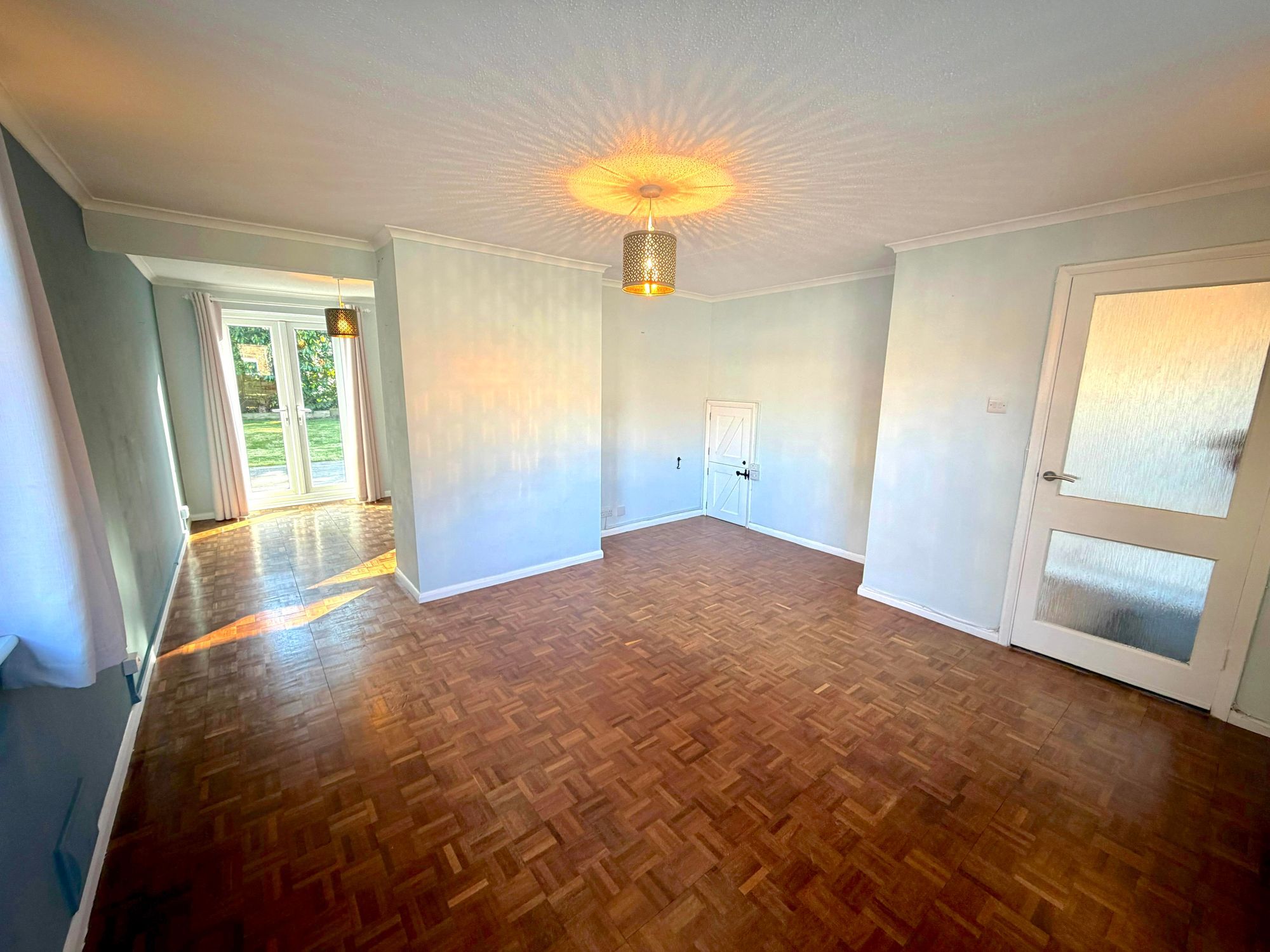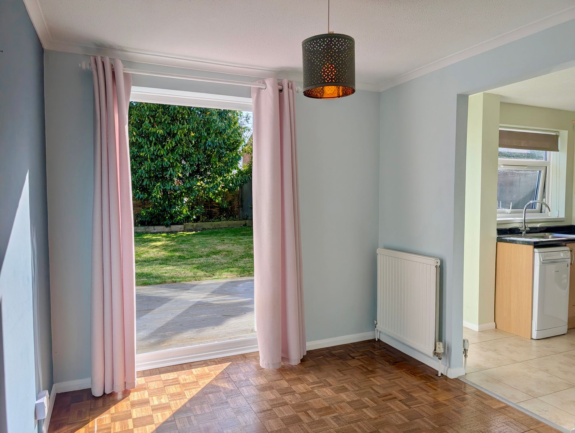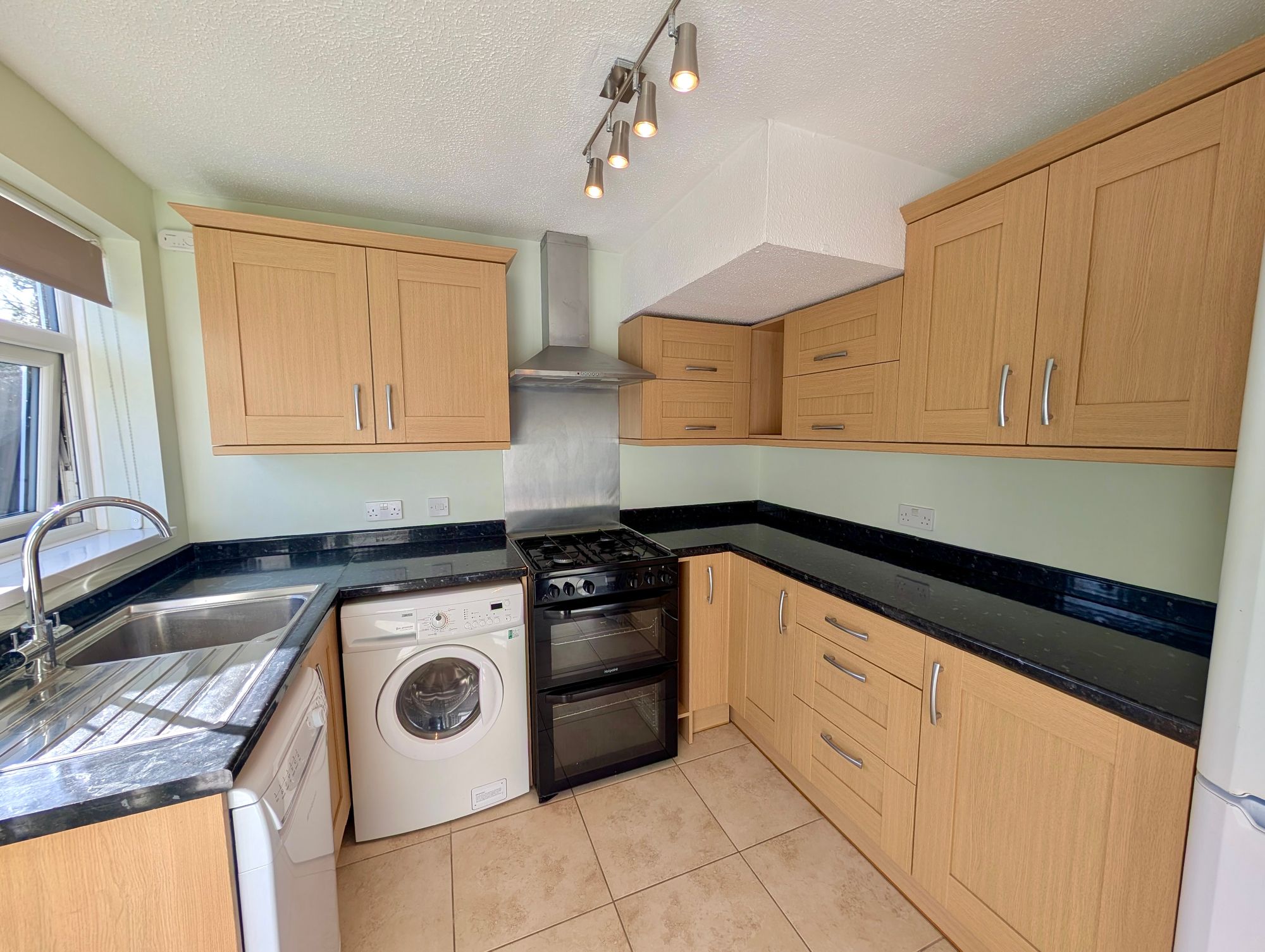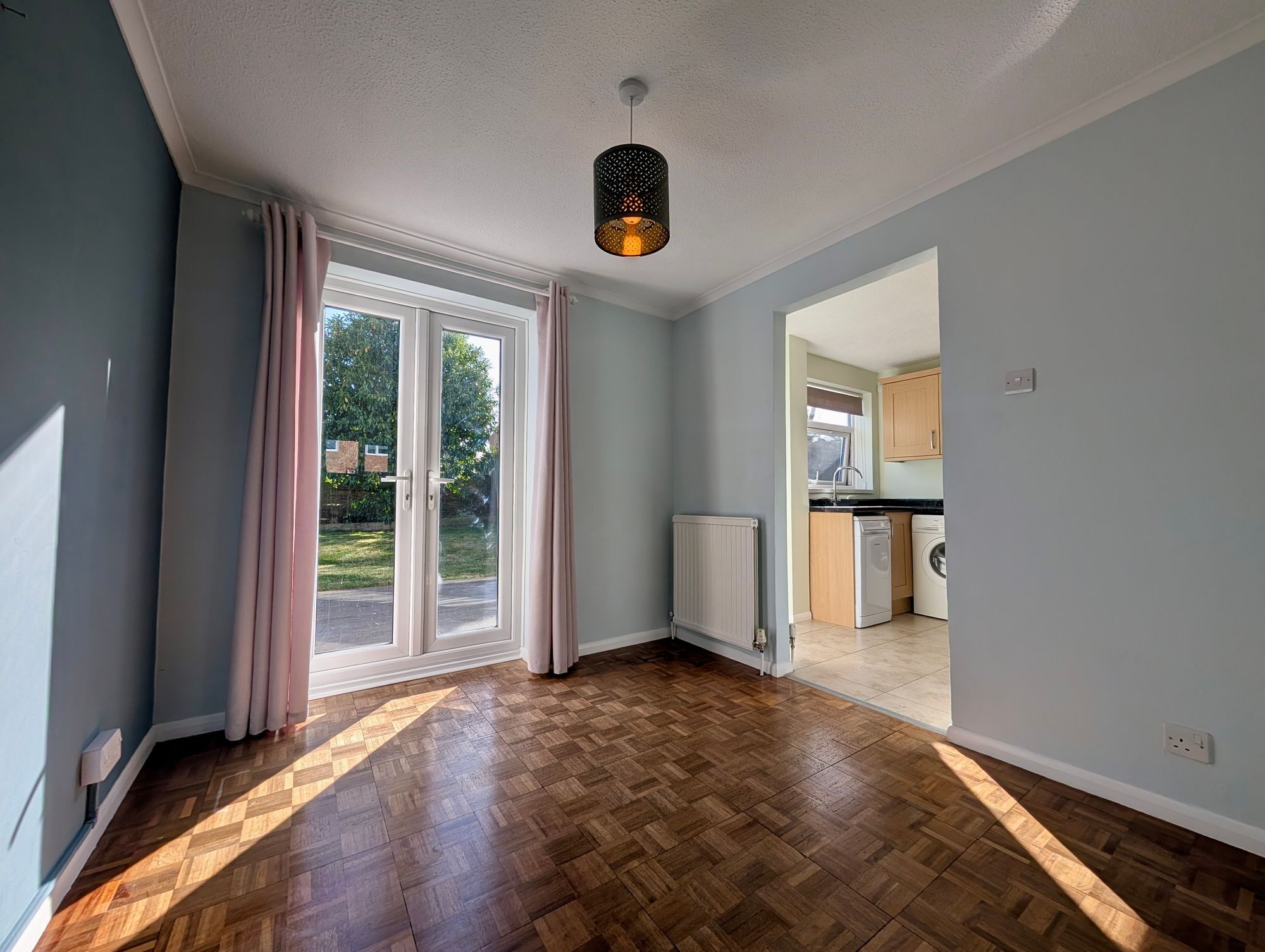 The property features open plan living/dining room alongside a well-appointed kitchen with white goods. Upstairs, there are three bedrooms, all with built in storage, as well as a family bathroom.