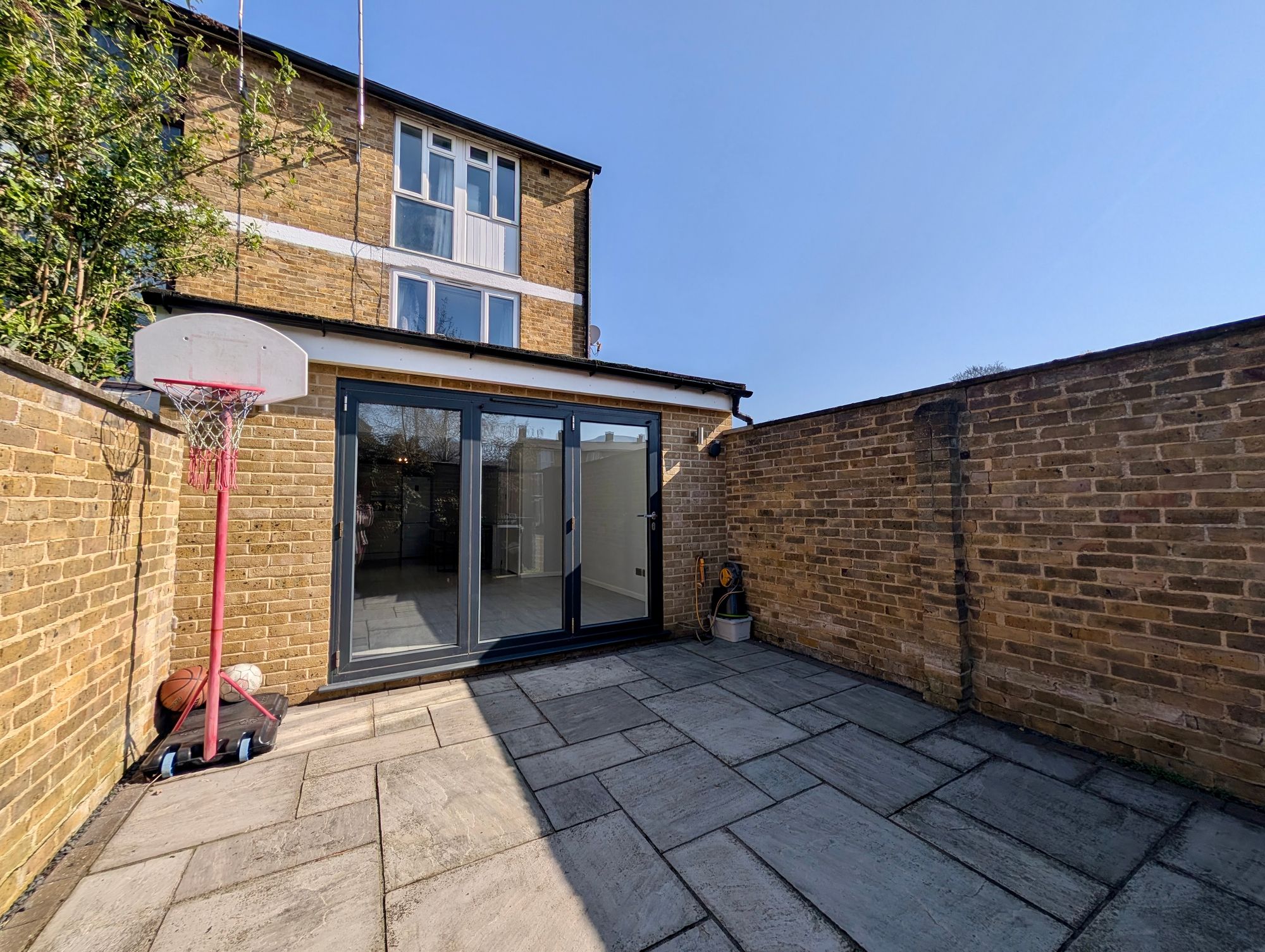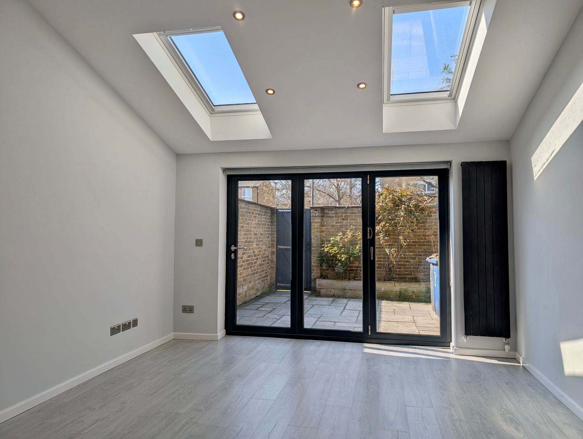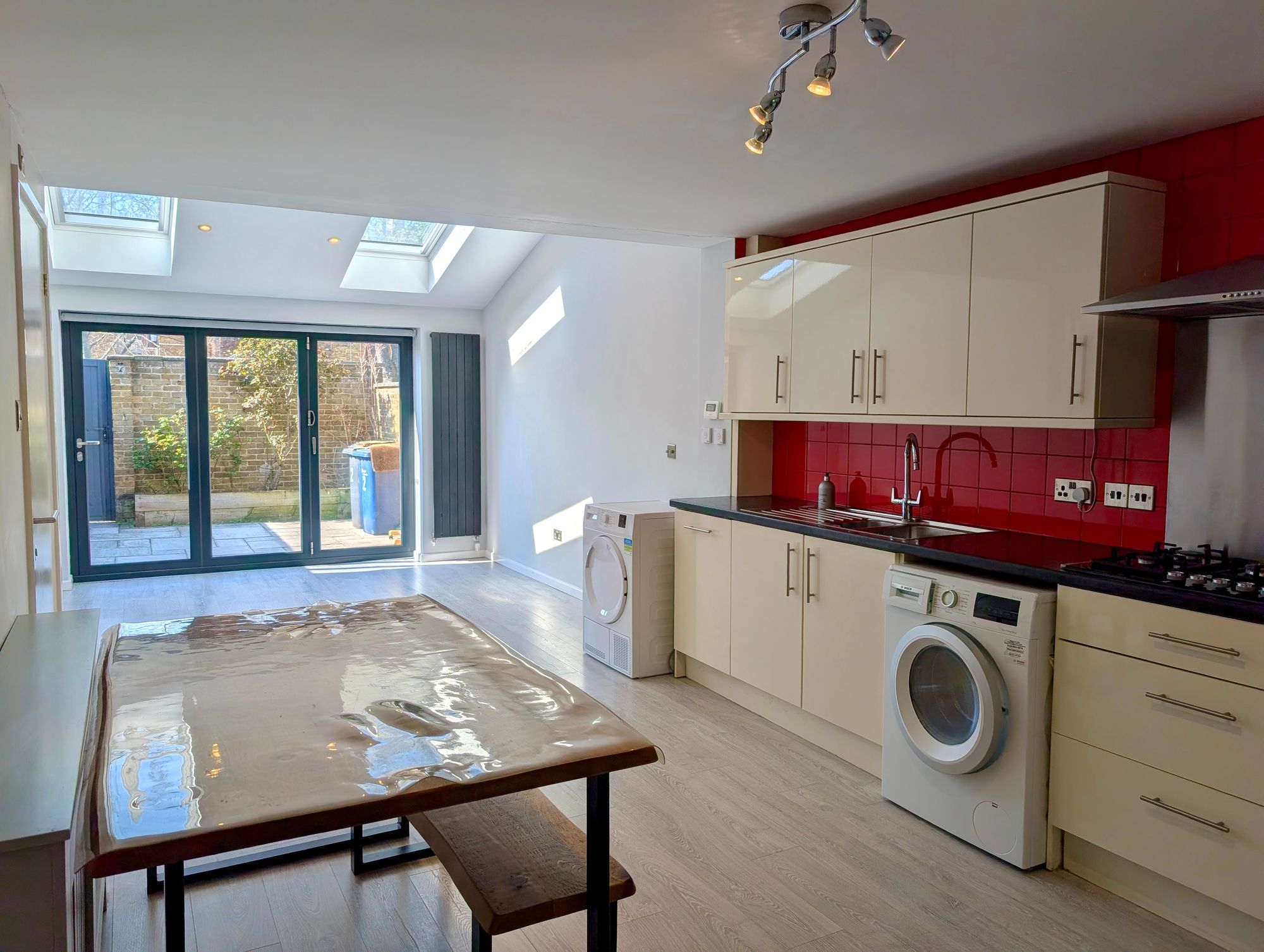 Kitchen/Dining room - Beautifully presented and spacious providing ample space for family living the room includes a modern kitchen area with iron and level base units and quality white goods, including a built-in oven and microwave, gas hob, freestanding fridge/freezer, washing machine and tumble dryer. The living area is particularly light with remote controlled Velux windows and glazed doors to the rear opening to the garden. A shower room with WC is accessed from the kitchen area. To the front of the property is a study/5th bedroom.